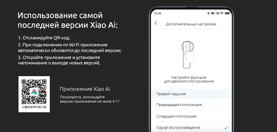 Благодаря многофункциональному приложению Xiao Ai для Android и iOS вы сможете задать, как именно устройства будут реагировать на ваши прикосновения и полностью настроить наушники под себя.
