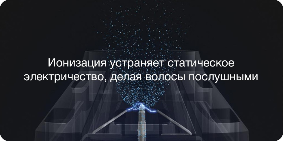 Как быстро высушить волосы и позаботиться об их здоровье? Ответ кроется в воздуховоде. Встроенный конденсатор притягивает находящиеся в воздухе водные частицы, а игловидные электроды мгновенно расщепляют их и превращают в отрицательно заряженные ионы. Ионы распыляются на волосы и кожу головы вместе с потоком воздуха, запечатывая чешуйки волос. Ионизация устраняет статическое электричество, делая волосы более послушными и блестящими.