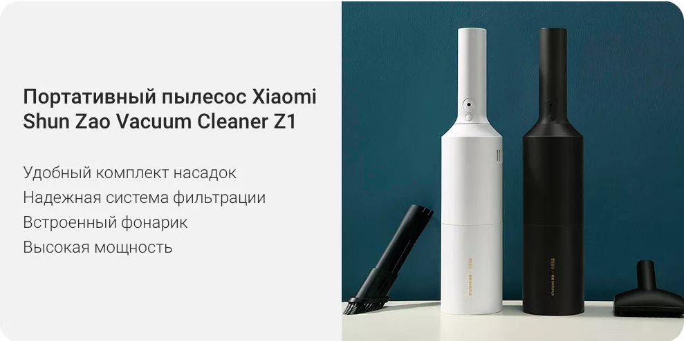 Рекомендуем портативный пылесос Xiaomi Shun Zao Vacuum Cleaner Z1 для уборки офисного и рабочего места, автомобилей, небольших квартир. Компактный размер пылесоса позволяет просто поставить его на полку или положить в шкаф.