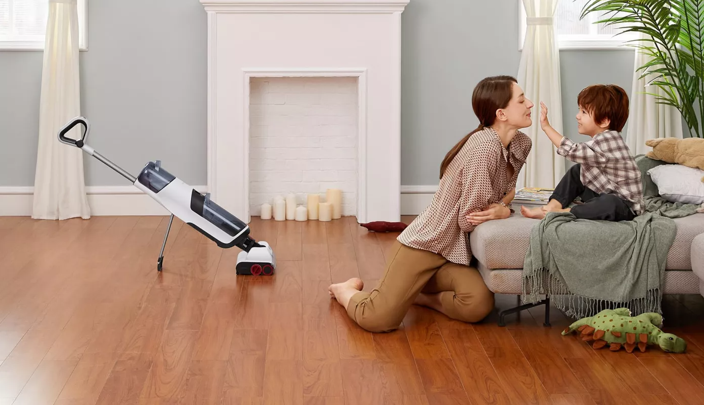 Благодаря двум вращающимся в противоположных направлениях роликам и подвижной чистящей головке, пользование Roborock Dyad становится невероятно легким. Даже ребенок сможет с легкостью справиться с этим устройством, управляя им одним пальцем.