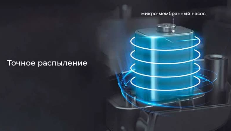 Имеет оптимальный угол распыления жидкости. Xiaomi Hutt C6 распыляет воду каждые 5 секунд, на каждый квадратный метр приходится до 10 распылений по 1 мл. Съемная конструкция сопла позволяет очищать его от загрязнений и солевых отложений жесткой воды.
