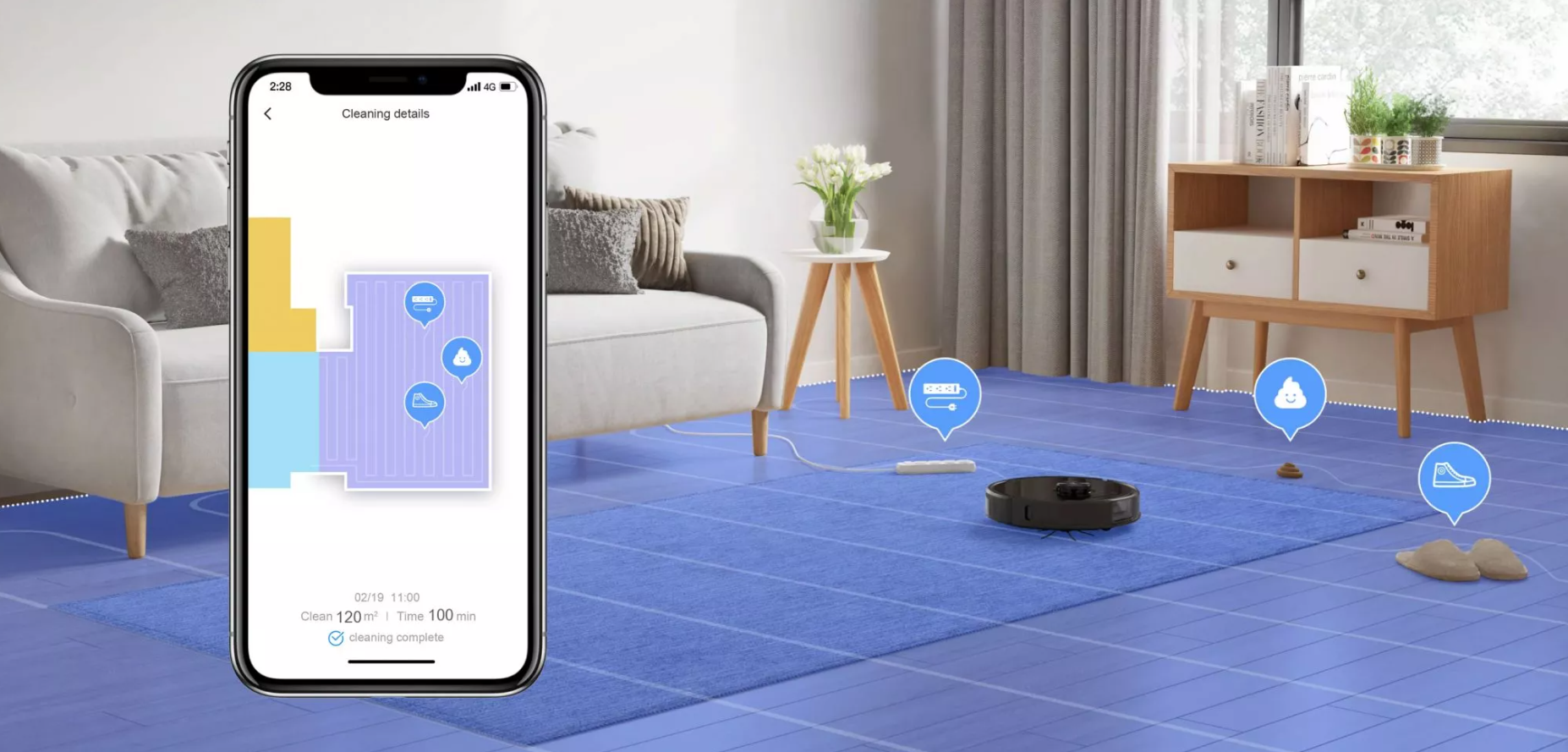 Ещё одной крайне полезной функцией нового домашнего помощника станет отображение на выстроенной карте предметов, которые валяются на полу. Воспользовавшись смартфоном, владелец робота может узнать какие именно предметы скрыты от его глаз – спрятаны под мебелью и в других закутках квартиры. Roborock S6 MaxV распознаёт найденные предметы, поэтому вам не придется ломать голову над тем, что именно он нашёл. Регулярное обновление системы пополняет базу данных различных предметов, делая Roborock S6 MaxV более умным.