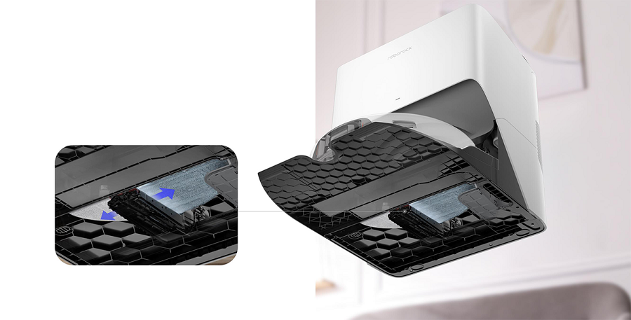 Робот-пылесос автоматически сушит промытую салфетку и нижнюю часть док-станции горячим воздухом, чтобы предотвратить образование неприятных запахов.