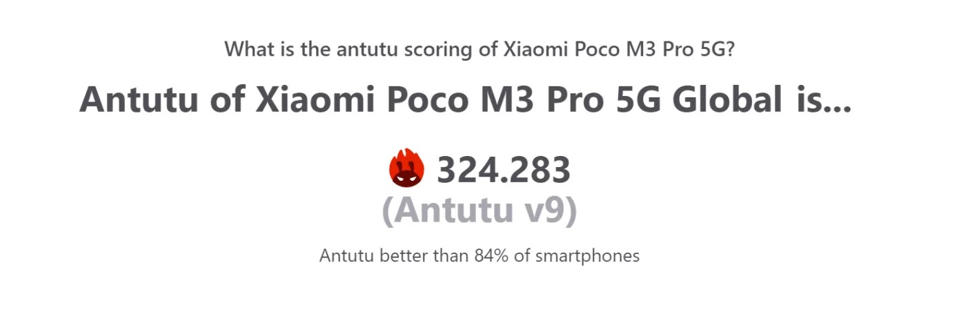 Poco M3 Pro 5G оснащен современным аппаратным обеспечением, которое обеспечивает высокую производительность и делает его одним из лидеров в своем классе. В его основе лежит восьмиядерный процессор MediaTek Dimensity 700 с тактовой частотой до 2,2 ГГц, изготовленный по 7-нм техпроцессу для оптимальной энергоэффективности. Видеопроцессор Arm Mali-G57 MC2 обеспечивает отличную графику. Благодаря такому сочетанию, Poco M3 Pro 5G достигает впечатляющего результата в тесте производительности AnTuTu, набирая более 324 тысяч баллов.