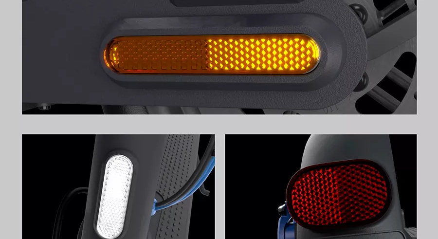 Безопасность движения на электросамокате в темное время суток обеспечивается задней светодиодной сигнальной лампой и тремя светоотражающими элементами.